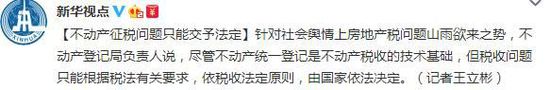不動(dòng)產(chǎn)登記局負(fù)責(zé)人:不動(dòng)產(chǎn)征稅問題只能交予法定