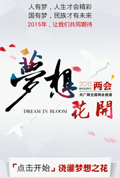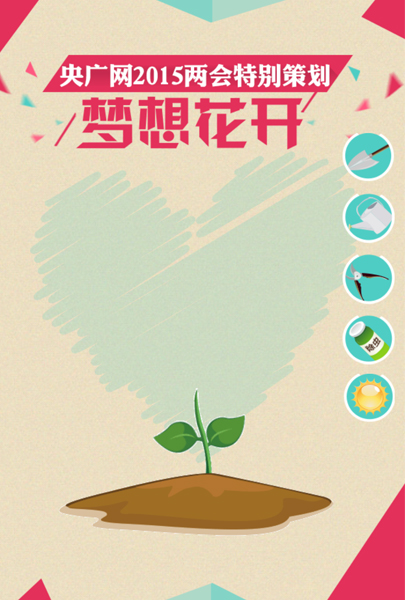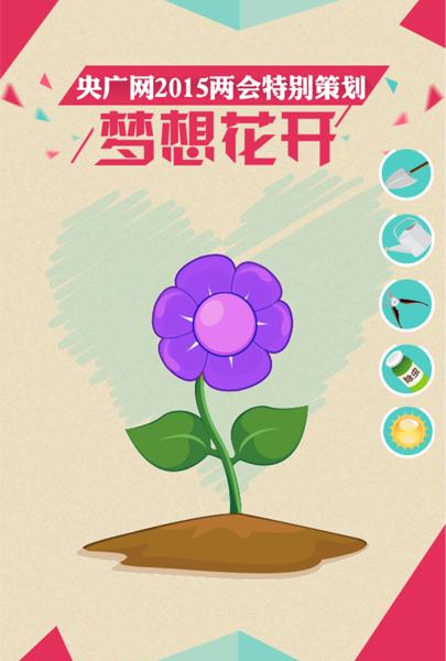 2015年全國兩會進程已過半,央廣網(wǎng)移動端游戲“澆灌夢想之花”4.0版現(xiàn)已出爐,你對兩會知多少?有沒有自信做個時政達人?馬上測試一下吧!答題養(yǎng)花贏獎品,玩游戲漲知識還送禮物,就是這么任性!兩會期間,央廣網(wǎng)推出移動互動游戲“澆灌夢想之花”,只需答對兩會熱點常識題,就能澆灌培養(yǎng)夢想之花。把種出的美麗大花朵分享朋友圈,并發(fā)送截圖至央廣網(wǎng)微信公號(微信號:cnr_cnr),即可參與抽取精美獎品。還等什么?快拿起手機掃描二維碼,進入游戲頁面參與吧~~