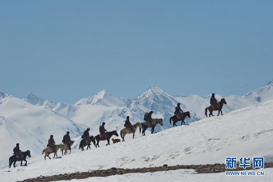 3月22日,駐守在喜馬拉雅山腹地的西藏阿里軍分區(qū)普蘭邊防連巡邏分隊官兵乘馬踏雪對海拔5218米的丁喀山口實施邊防巡邏。陽春三月,喜馬拉雅山脈腹地連降大到暴雪,部分地段積雪厚度達到3米左右,氣溫驟降至零下18攝氏度。連日來,阿里軍分區(qū)普蘭邊防連加強邊境管控力度,采取乘馬與徒步相結(jié)合的方式不定期對涉外山口實施邊防巡邏,以確保邊境地區(qū)的安全穩(wěn)定。
