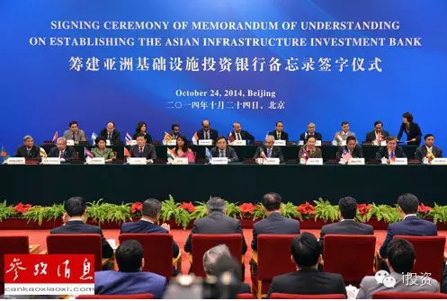 2014年10月24日,包括中國、印度、新加坡等在內(nèi)22個首批意向創(chuàng)始成員國的財長和授權代表在北京簽約,共同決定成立亞洲基礎設施投資銀行。