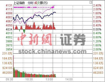 A股午后繼續(xù)竄高 滬指漲超1.7%沖上4100點