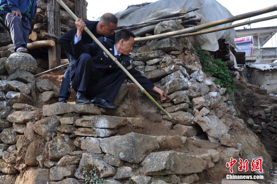春夏相交,蛇類活動異;钴S。記者14日從云南新平縣森林公安局獲悉,該局近日將一條長2.7米、胸圍16厘米的“占院為王”的眼鏡王蛇在哀牢山自然保護(hù)區(qū)無人處放生。據(jù)了解,4月12日,新平縣森林公安局值班民警接警稱:“者竜一戶村民家闖入一條大蛇,其攻擊性很強(qiáng),請幫忙處理!苯泳,縣森林公安局立即指派在者竜辦案的民警,并聯(lián)系者竜派出所、鄉(xiāng)天保管理所的工作人員迅速趕往現(xiàn)場處理。到達(dá)現(xiàn)場后,三方工作人員發(fā)現(xiàn)一條大蛇盤踞在居民的后院中,大蛇蛇身花紋黑黃相間,不時(shí)發(fā)出“嗤嗤嗤”的警告聲,隨后在多方努力下眼鏡王蛇被擒獲。姚俊偉 攝