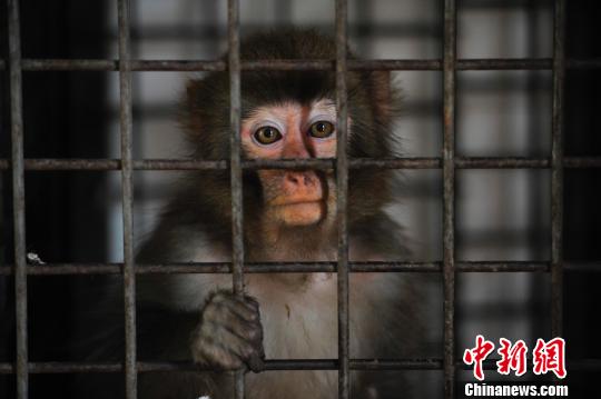 圖為放生前在保護(hù)區(qū)獸醫(yī)院進(jìn)行隔離觀察的獼猴!⑷疥枴z