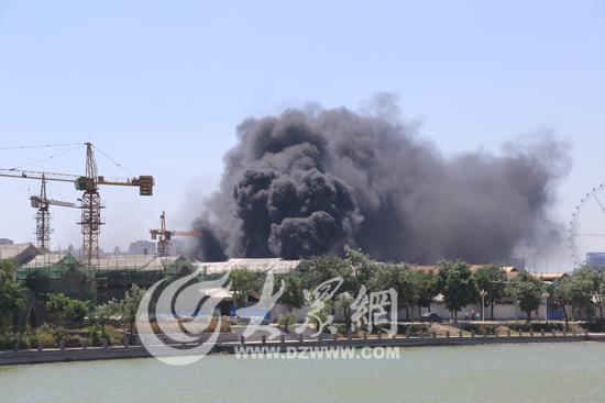 聊城古城區(qū)西南片區(qū)一在建工地突發(fā)火災(zāi),濃煙滾滾。大眾網(wǎng)記者王傳勝攝