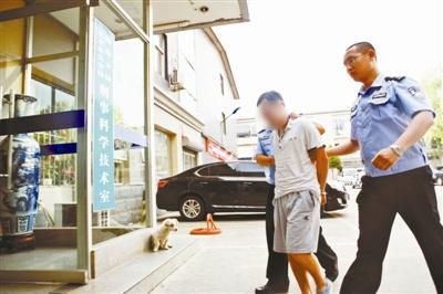 警方將一名“槍手”押解回刑警隊(duì)供圖/北京市公安局