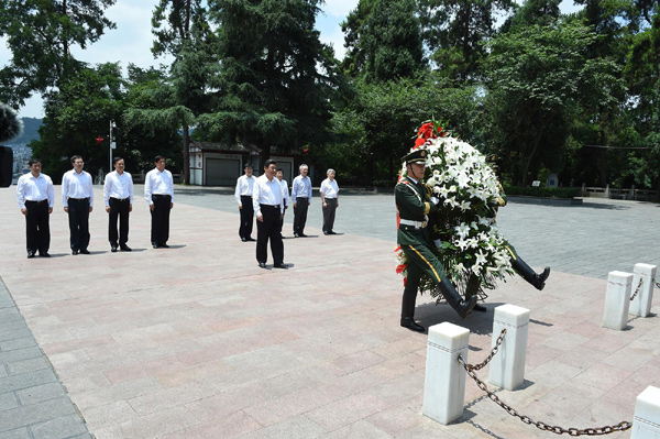 新華網(wǎng)北京6月16日電 據(jù)新華社客戶端報(bào)道,藍(lán)天白云,青松翠柏。習(xí)近平總書記16日離京來到貴州遵義考察,一下飛機(jī)就直奔紅軍山烈士陵園,向紅軍烈士紀(jì)念碑敬獻(xiàn)花籃。紀(jì)念碑四周的浮雕展現(xiàn)了當(dāng)年紅軍浴血奮戰(zhàn)的場景。在“突破烏江天險(xiǎn)”浮雕前,總書記駐足感嘆:“當(dāng)時(shí)要是過不去就危險(xiǎn)了……”碑上“紅軍烈士永垂不朽”8個字是鄧小平同志題寫的,他佇立凝望,聽取介紹。這是黨的十八大后習(xí)近平總書記第一次來黔考察。
