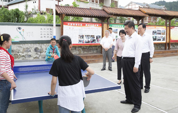 總書記來到貴州遵義的花茂村,在該村白泥組的黨員群眾之家門口,幾個孩子在打乒乓球,總書記走上前去觀看。得知孩子們是放學(xué)了在這里玩,他問大家學(xué)校遠(yuǎn)不遠(yuǎn)、放學(xué)怎么回家。孩子們說,只有一公里的路,走10多分鐘就到家了,總書記聽了微笑著點(diǎn)點(diǎn)頭。