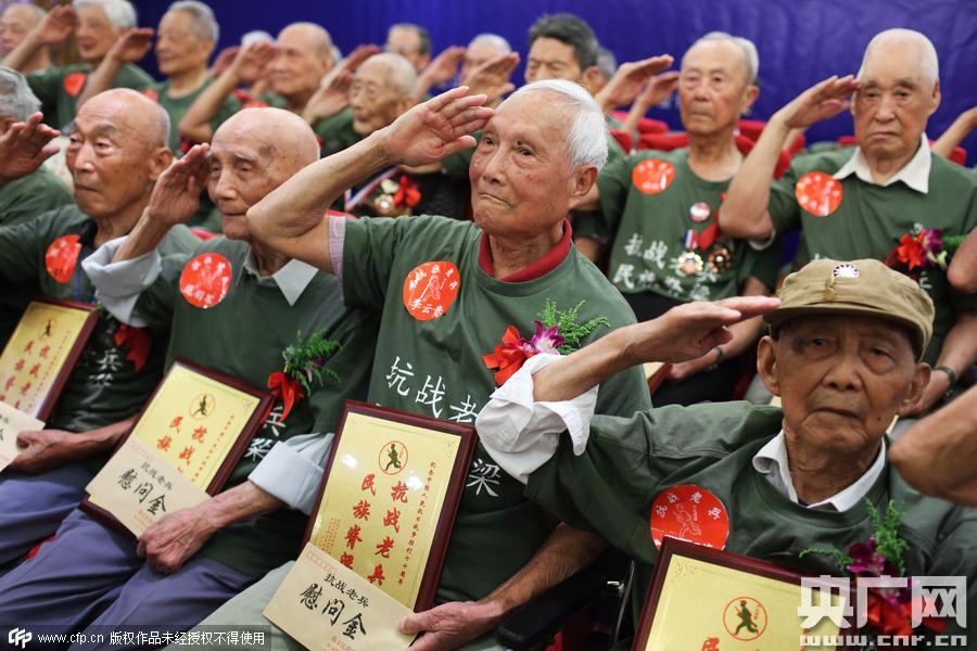 2015年7月5日,三十三位來(lái)自全國(guó)各地的抗戰(zhàn)老兵齊聚南京,參加南京1213志愿者同盟舉辦的2015紀(jì)念77抗戰(zhàn)78周年老兵重聚活動(dòng),他們中有參加過(guò)南京保衛(wèi)戰(zhàn)、淞滬會(huì)戰(zhàn)、武漢會(huì)戰(zhàn)、長(zhǎng)沙會(huì)戰(zhàn)、常衡會(huì)戰(zhàn)的前線將士,也有從事輜重、通信、醫(yī)護(hù)等工作的當(dāng)年老兵,共憶崢嶸歲月。
