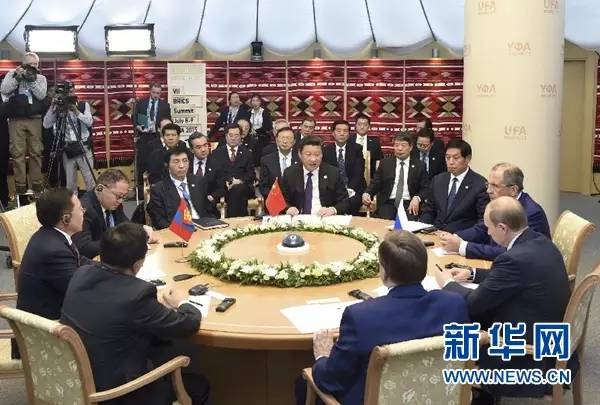 7月9日,國家主席習(xí)近平在烏法同俄羅斯總統(tǒng)普京、蒙古國總統(tǒng)額勒貝格道爾吉舉行中俄蒙元首第二次會晤。