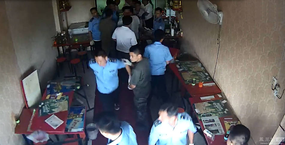 2015年7月7日,山東省濱州市濱城區(qū),對占道經(jīng)營、亂搭亂建、露天燒烤攤點(diǎn)進(jìn)行無遺漏整頓,一臨街小吃店主因阻攔城管收走門前折疊的遮陽扇,與城管發(fā)生口角,被惱羞成怒的城管執(zhí)法人員追進(jìn)店內(nèi),多張桌子被掀翻,留下一地狼籍后揚(yáng)長而去。