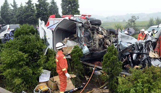 云南昆曲高速11車追尾致5死4傷 一車被擠成廢鐵
