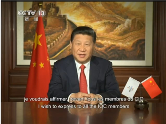 中國國家主席習(xí)近平高度重視北京申辦2022年冬奧會的工作,2015年7月31日,他通過一段中文視頻向在座的各位致以問候。
