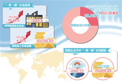 今年上半年,我國與“一帶一路”沿線國家經(jīng)貿(mào)合作亮點(diǎn)紛呈,總體進(jìn)度和效果都比預(yù)期更好!耙粠б宦贰睉(zhàn)略為我們從沿線國家“引進(jìn)來”提供了新動(dòng)力,沿線龐大的基礎(chǔ)設(shè)施建設(shè)需求帶來源源不斷的合作大單,雙向投資活躍說明我們與沿線國家經(jīng)濟(jì)上互補(bǔ)性很強(qiáng)——