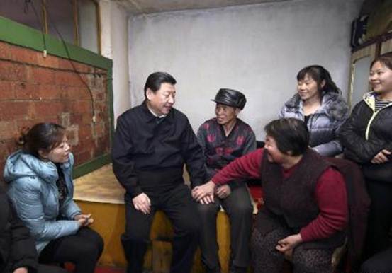 2014年1月26日,習(xí)近平來(lái)到內(nèi)蒙古阿爾山市伊爾施鎮(zhèn)看望生活在林業(yè)棚戶區(qū)的群眾。74歲的郭永財(cái)在林業(yè)局工作了30年,6口人住在38平米簡(jiǎn)陋平房里。習(xí)近平踏雪走進(jìn)他家,察地窖,摸火墻,坐炕頭,同老郭促膝談心?倳泴(duì)老郭一家人說(shuō):“快過(guò)節(jié)了,知道你們生活有困難,我特地來(lái)看望你們。林業(yè)工人為國(guó)家作出了貢獻(xiàn),黨和國(guó)家不會(huì)忘記大家!
