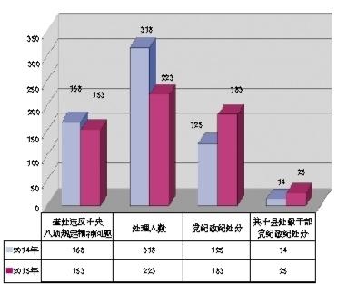 1.同比查處問題和處理人數(shù)略有減低,但黨政紀(jì)處分力度加大。今年上半年,全區(qū)共查處違反中央八項規(guī)定精神問題153起,處理223人,其中黨紀(jì)政紀(jì)處分183人。與去年上半年同口徑統(tǒng)計項目相比查處問題數(shù)減少8.9%,處理人數(shù)同比減少29.9%,但黨紀(jì)政紀(jì)處分人數(shù)同比卻增加46.4%,特別是黨紀(jì)政紀(jì)處分中處理縣處級干部同比增加64.3%。這說明,今年全區(qū)各級紀(jì)檢監(jiān)察機(jī)關(guān)嚴(yán)字當(dāng)頭,加大了執(zhí)紀(jì)問責(zé)力度,動輒則咎,從嚴(yán)從重懲處,切實提高監(jiān)督執(zhí)紀(jì)的實效性、震懾力,使紀(jì)律立起來、嚴(yán)起來。