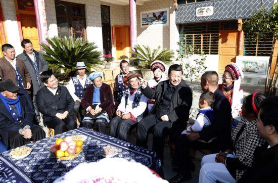 1月20日,習(xí)近平來到大理白族自治州大理市灣橋鎮(zhèn)古生村村民李德昌家,同村民們圍坐在一起親切拉家常。新華社記者 鞠鵬攝