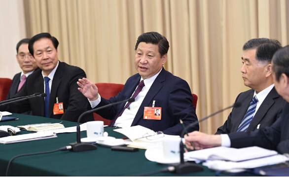 圖為:習(xí)近平總書(shū)記參加十二屆全國(guó)人大二次會(huì)議安徽代表團(tuán)的審議。