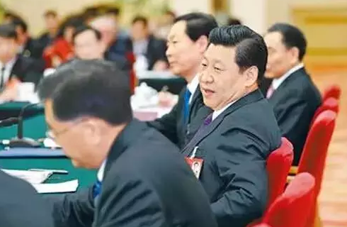 圖為:習(xí)近平參加十二屆全國人大二次會議安徽代表團(tuán)的審議強(qiáng)調(diào)各級干部樹立發(fā)揮好的作風(fēng)