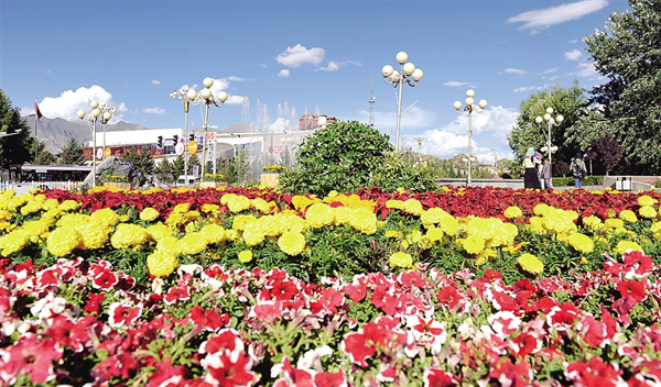 圖為裝扮一新的拉薩貢嘎機場高速公路柳梧新區(qū)路段成為一道亮麗的風景線。記者 洛桑 攝