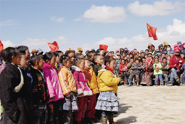 圖為那曲縣羅瑪鎮(zhèn)開展慶祝自治區(qū)成立50周年群眾活動。記者 謝偉 攝