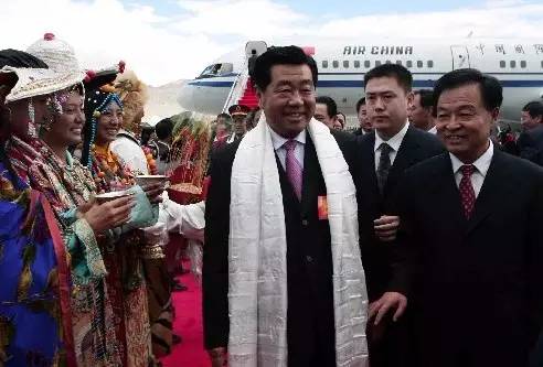 以時任中共中央政治局常委、全國政協(xié)主席賈慶林為團長的中央代表團乘專機抵達拉薩,參加西藏自治區(qū)成立40周年慶;顒印