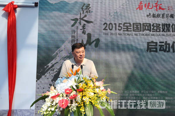 隨后,與會(huì)嘉賓共同揭開“綠水青山·詩畫浙江”2015全國網(wǎng)絡(luò)媒體綠行浙江的帷幕,正式啟動(dòng)本次媒體行。