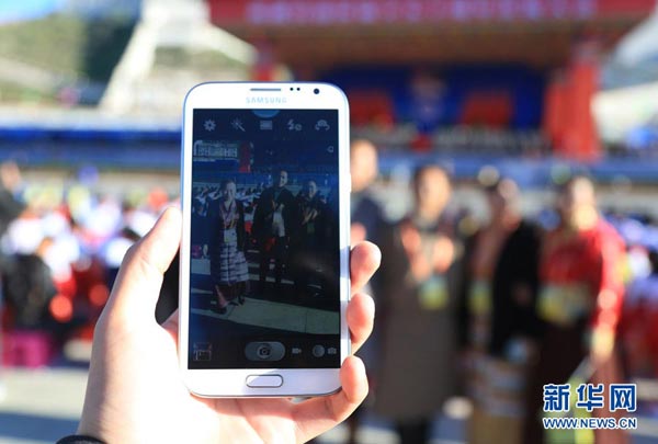 今年是西藏自治區(qū)成立50周年。9月8日上午10時,西藏自治區(qū)成立50周年慶祝大會在拉薩市布達拉宮廣場舉行。圖為觀眾在大會現(xiàn)場合影。