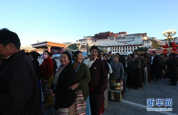 今年是西藏自治區(qū)成立50周年。9月8日上午10時,西藏自治區(qū)成立50周年慶祝大會在拉薩市布達拉宮廣場舉行。圖為參加慶祝大會的群眾正在入場。