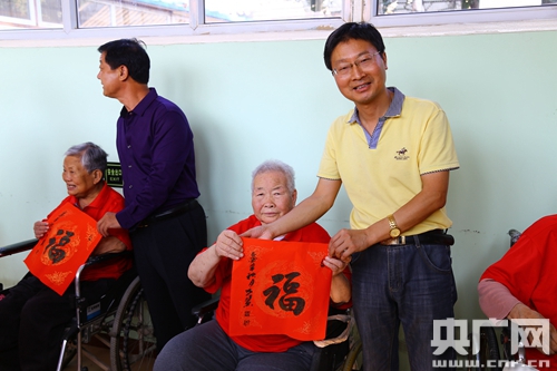 向敬老院老人送祝福