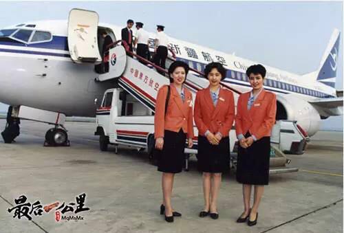 80年代新疆航空公司乘務(wù)組合影,其中右一為瑪麗亞