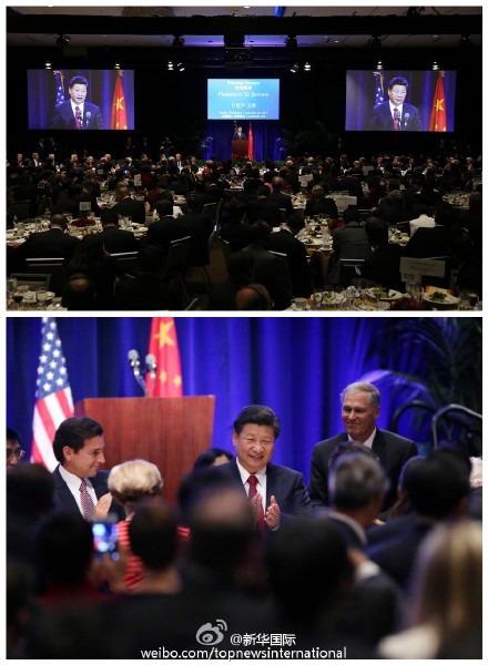 聚焦習近平訪美:將中國發(fā)展政策攤開 增強透明度,當?shù)貢r間9月22日傍晚,中國國家主席習近平在美國華盛頓州西雅圖市出席華盛頓州當?shù)卣兔绹押脠F體聯(lián)合舉行的歡迎宴會并發(fā)表演講。當?shù)貢r間9月22日傍晚,中國國家主席習近平在美國華盛頓州西雅圖市出席華盛頓州當?shù)卣兔绹押脠F體聯(lián)合舉行的歡迎宴會并發(fā)表演講。