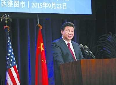 2015年西雅圖時(shí)間9月22日,習(xí)近平主席出席華盛頓州當(dāng)?shù)卣兔绹押脠F(tuán)體聯(lián)合舉行的歡迎宴會(huì)發(fā)表的演講