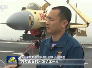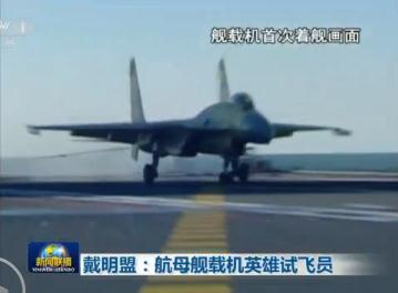 央視網(wǎng)消息(新聞聯(lián)播):海軍某艦載航空兵部隊部隊長戴明盟,是第一位駕機在遼寧艦上成功著艦和起飛的試飛員,他以過人的膽魄和精湛的技術(shù),為加快殲-15艦載機研制定型和我國航母戰(zhàn)斗力建設做出了特殊貢獻。