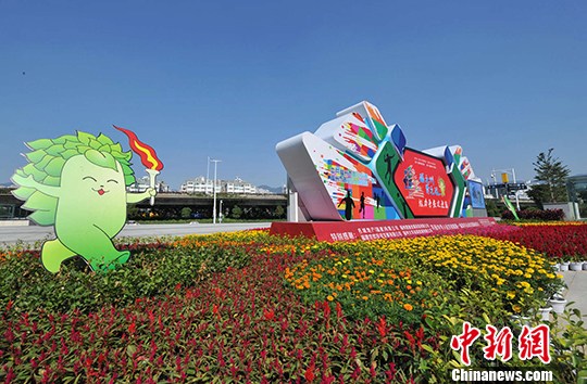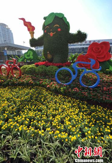隨著首屆全國青年運(yùn)動(dòng)會(huì)即將在福州開幕,一組組布置在福州街頭的各種園林小品將福州裝扮得別樣美麗。 張斌 攝