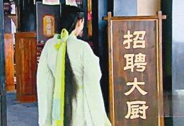 這集,云歌和孟玨去一家飯館吃飯,飯館的牌匾是看不懂的三個(gè)字,后劇里說(shuō)飯館名為“七里香”。雖然這三個(gè)古代字大家都看不懂,但最起碼還有小篆的影子。但緊接著,當(dāng)云歌進(jìn)了飯館,一個(gè)巨大的牌子立在眼前,上面有四個(gè)大字——“招聘大廚”!那字體小編真不知該說(shuō)啥好了,雖說(shuō)字體像隸書(shū),卻也是電腦體簡(jiǎn)化字無(wú)疑。小編想問(wèn)編劇于正,整那么大個(gè)電腦刻字在西漢的飯館里,你是怕大家看不著,不吐槽你嗎?