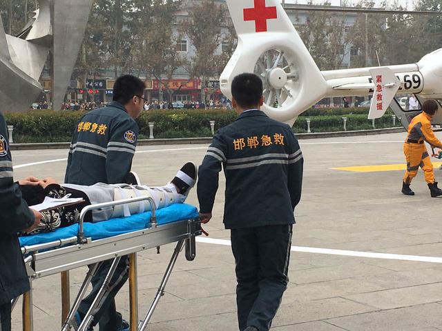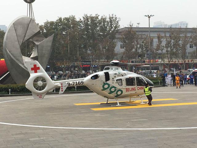 9月21日,中午13點(diǎn)左右,在河北省邯鄲市第一人民醫(yī)院門(mén)口,一架救援直升機(jī)緊急降落。