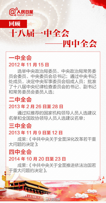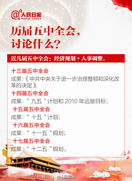 十八屆五中全會時間公布 10月26日至29北京召開,中共中央政治局10月12日召開會議,研究制定國民經濟和社會發(fā)展第十三個五年規(guī)劃重大問題,審議通過《中國共產黨廉潔自律準則》、《中國共產黨紀律處分條例》。