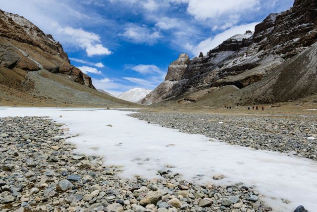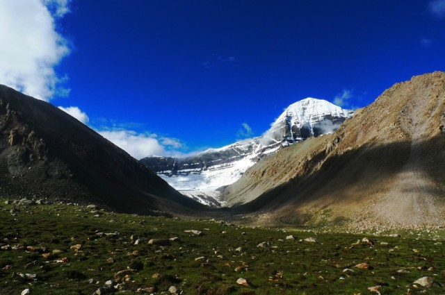 東邊的萬寶山,傳說是釋迦牟尼腳踏過的山,西邊是度母山,南邊是智慧女神峰,北邊是護法神大山。每年都有許多 來自內(nèi)地、印度和尼泊爾的信徒前來朝拜轉(zhuǎn)山。岡仁波齊還是西藏佛教、印度教和原始苯教等教的朝圣中心,素有“神山之王”的美稱。
