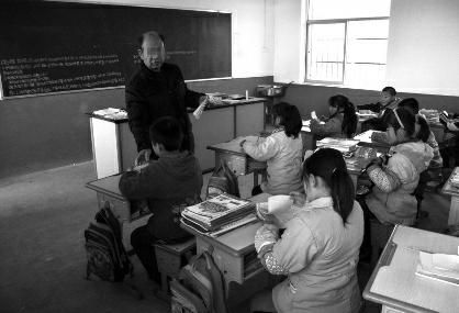 在白洛小學(xué)五年級(jí)教室,李老師正在給學(xué)生上課。他說,自己早已經(jīng)退休了,去年校長(zhǎng)白軍紅打電話叫他回來(lái)代課,每月從學(xué)校領(lǐng)取1200元!拔乙彩沁@學(xué)期才知道自己替王亞平帶課,只要是王亞平的課時(shí)我便給上。”