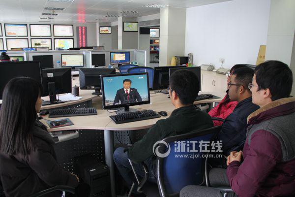 今天上午10點(diǎn)半,杭州艮山西路的氣象科技樓里,浙江省氣象服務(wù)中心的李建和同事們通過網(wǎng)絡(luò),同步收看了習(xí)近平總書記在第二屆世界互聯(lián)網(wǎng)大會(huì)上的發(fā)言。