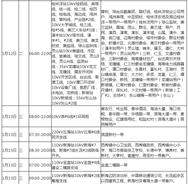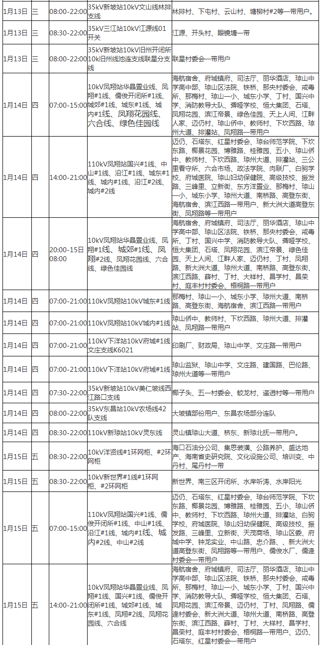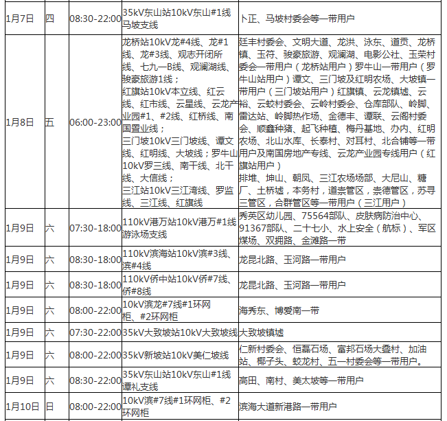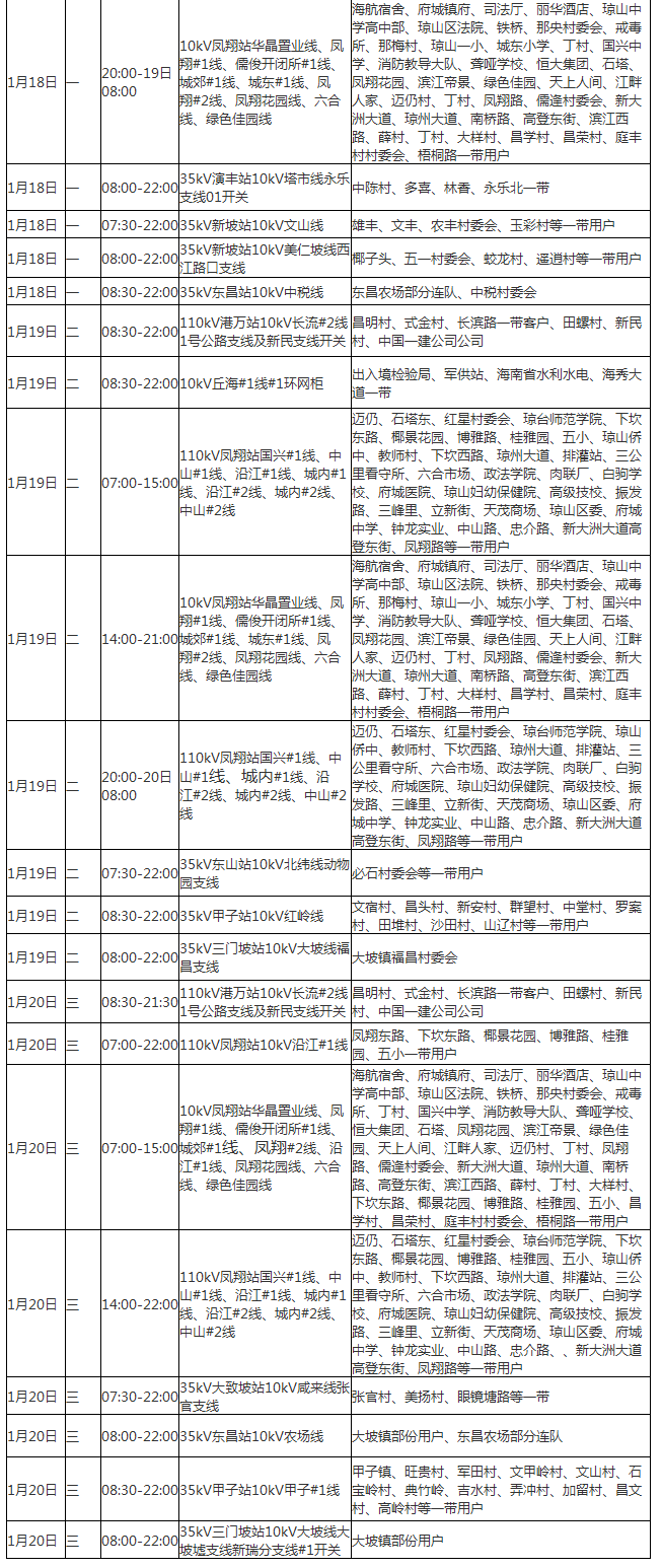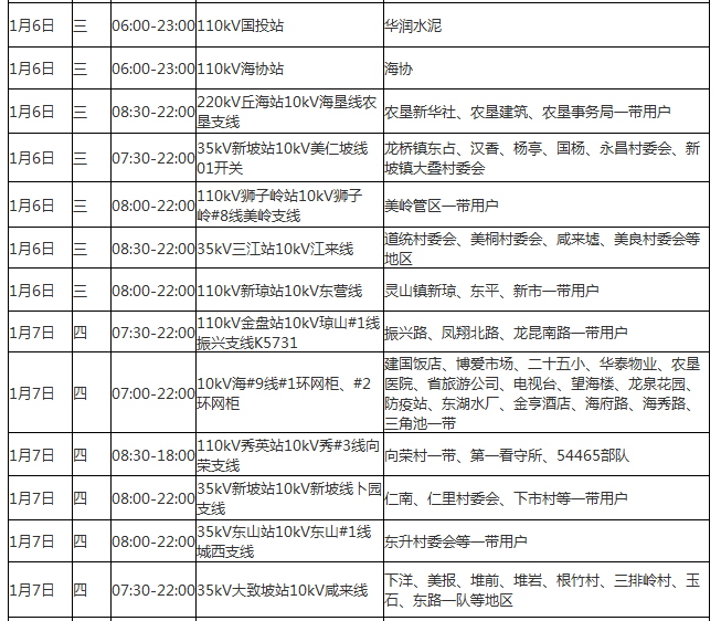 提前做準(zhǔn)備!?2016年1月4日-20日停電線路公布[計(jì)劃表]