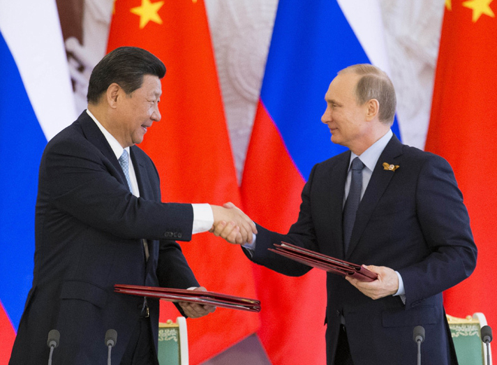 2015年5月8日,習(xí)近平在訪問(wèn)俄羅斯期間,同俄羅斯總統(tǒng)普京共同簽署聯(lián)合聲明。 來(lái)源:新華網(wǎng)