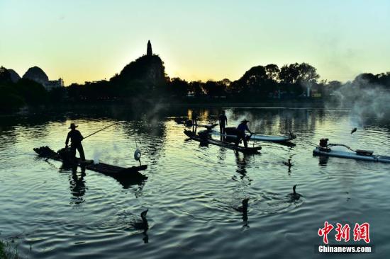 10月2日,廣西桂林穿山景區(qū)再現(xiàn)“漓江漁火”場景,吸引數(shù)千市民、中外游客和攝影愛好者前來觀賞、拍攝。中新社記者 唐夢憲 攝