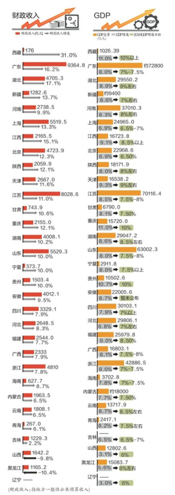 31省市區(qū)2016年GDP、財政收入增速目標(biāo)陸續(xù)公布