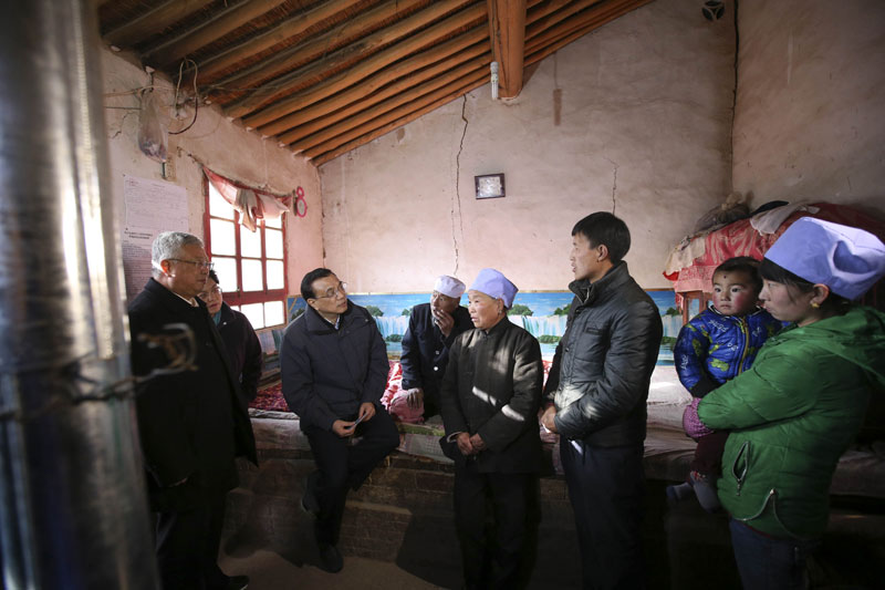 李克強(qiáng)西海固山路顛簸一小時(shí)入戶看望特困村民