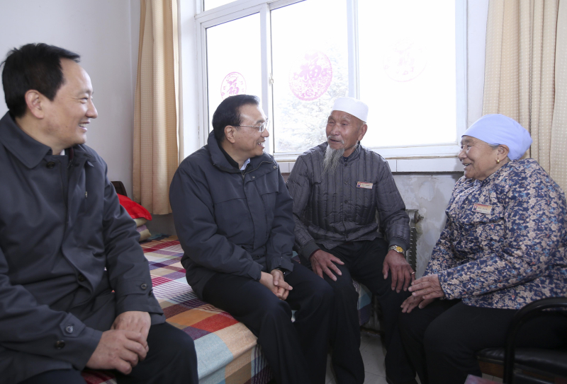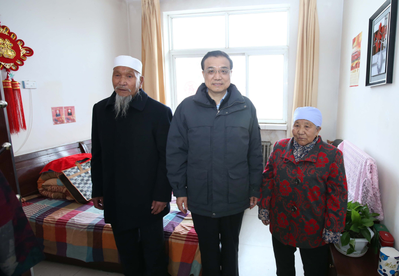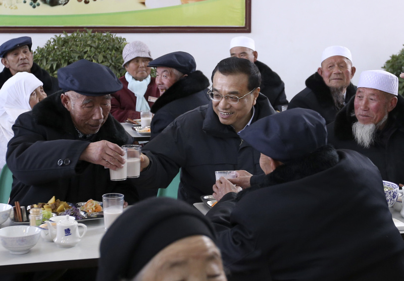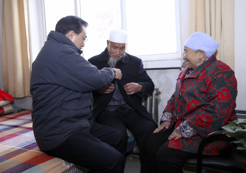 李克強(qiáng)過小年走訪敬老院,給回族老人送新衣