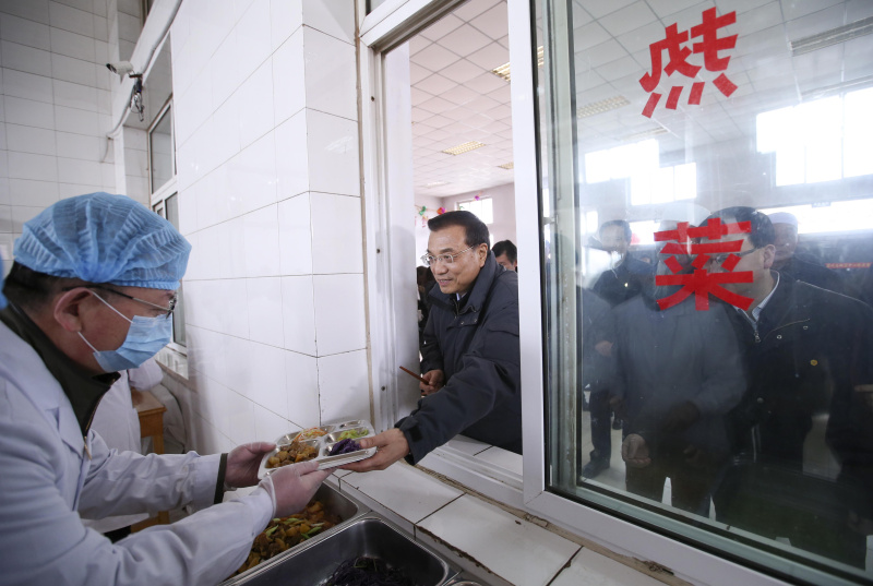李克強(qiáng)2月1日來到寧夏固原市原州區(qū)中心敬老院,與老人們?cè)谝黄疬^小年?偫砼c坐在身旁的回族老人馬安倉邊吃邊拉家常,稱贊老人“紅光滿面”,還給他盛了一碗熱氣騰騰的餃子。隨后,李克強(qiáng)起身舉起手中的熱飲,祝愿各位老人身體健康,幸福長壽。