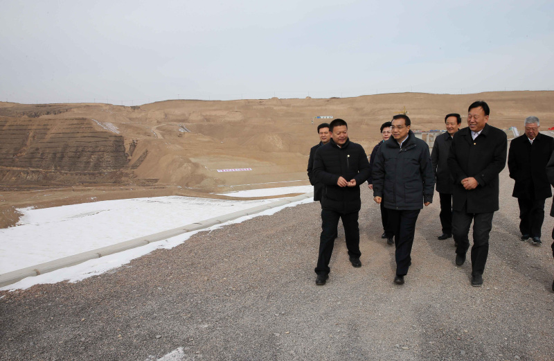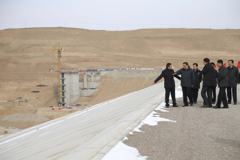 李克強(qiáng)1日冒著零下10度嚴(yán)寒登上寧夏固原市中莊水庫大壩,察看城鄉(xiāng)飲水安全工程建設(shè)情況。