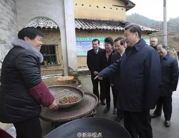 紅軍烈士后代左秀發(fā)一家正在準(zhǔn)備年貨?倳泚(lái)到他家門前,拿起木槌,同村民一起打糍粑?吹阶蠹壹庸ぶ裰乒に嚻罚B(yǎng)娃娃魚,聽(tīng)說(shuō)年后要改造房子,總書記十分高興,希望一家人早日住上新房,生活越來(lái)越好。他叮囑老人的孫子好好學(xué)習(xí)。