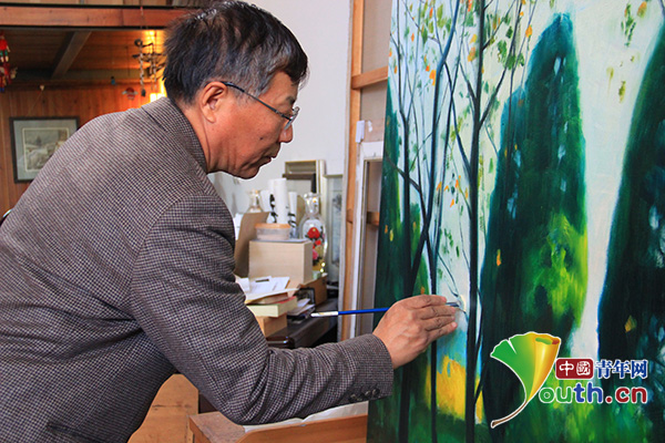 王鐵牛創(chuàng)作油畫。中國青年網(wǎng)記者 劉尚君攝